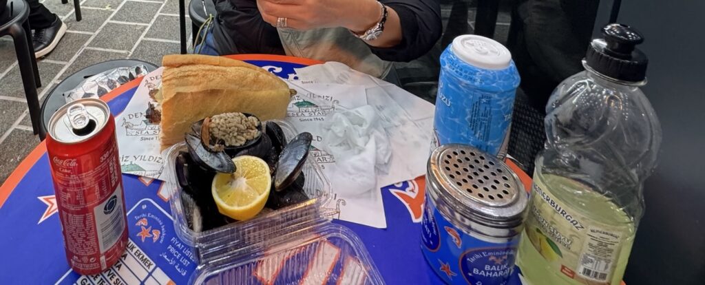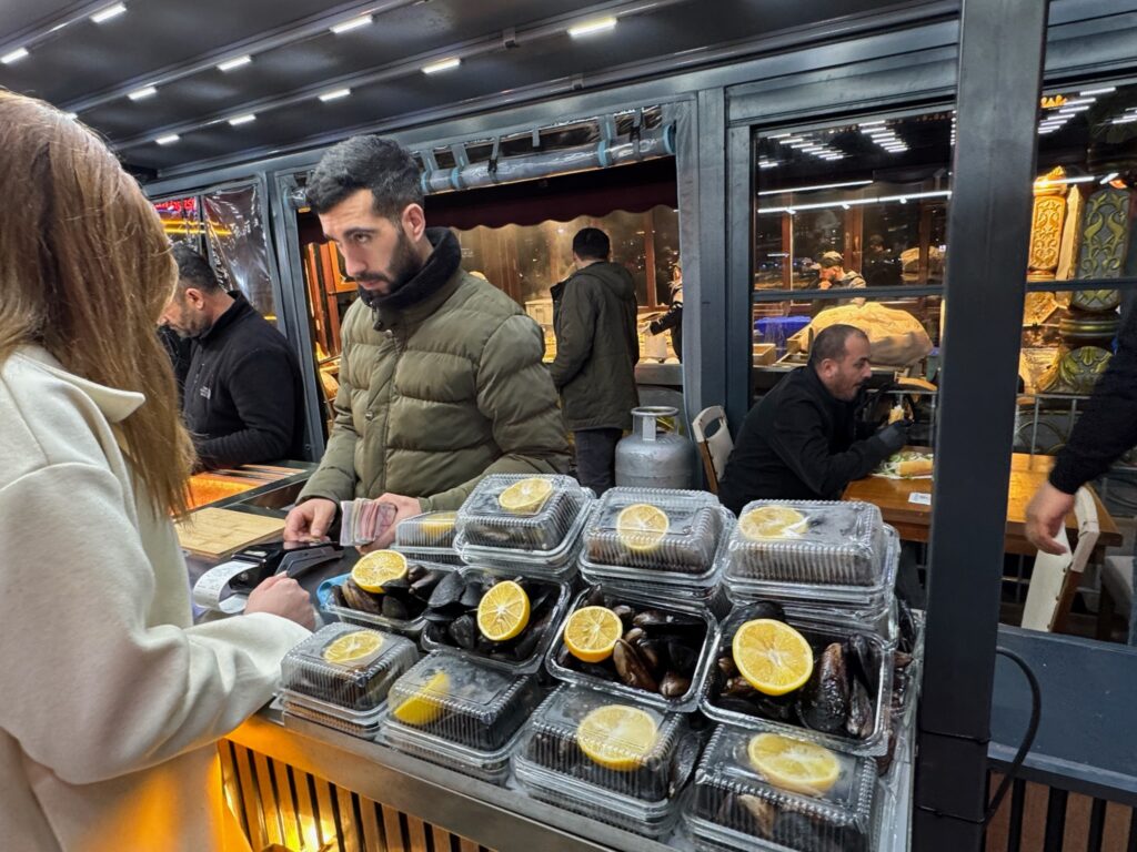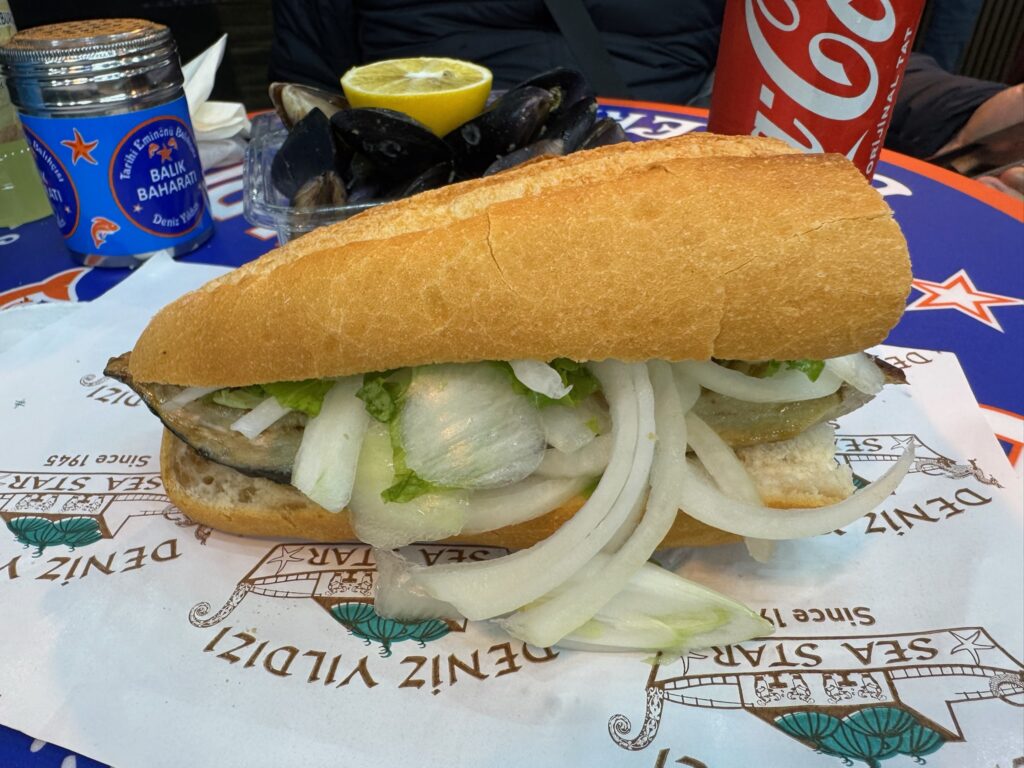 新市街側のカラキョイ魚市場周辺の常設屋台も人気で、焼きたてを安価に楽しめる定番スポットだそうです。