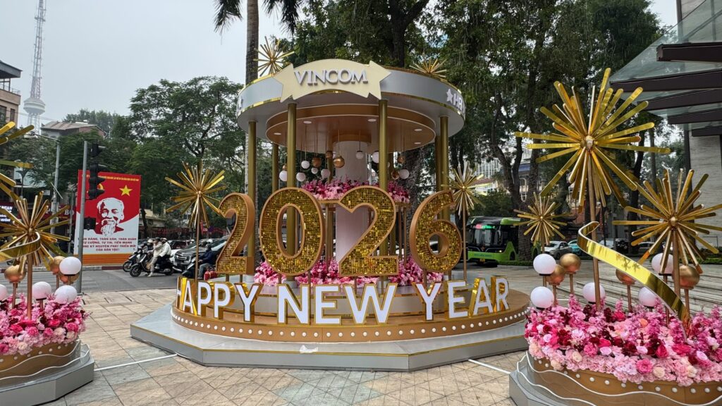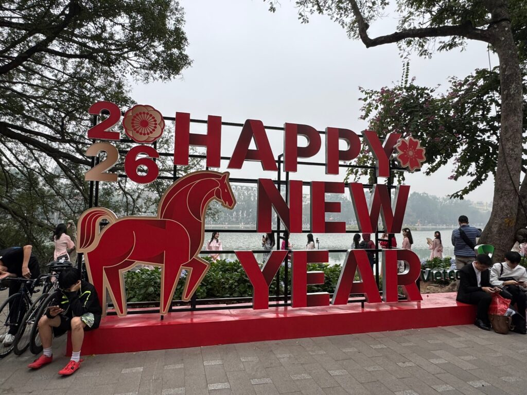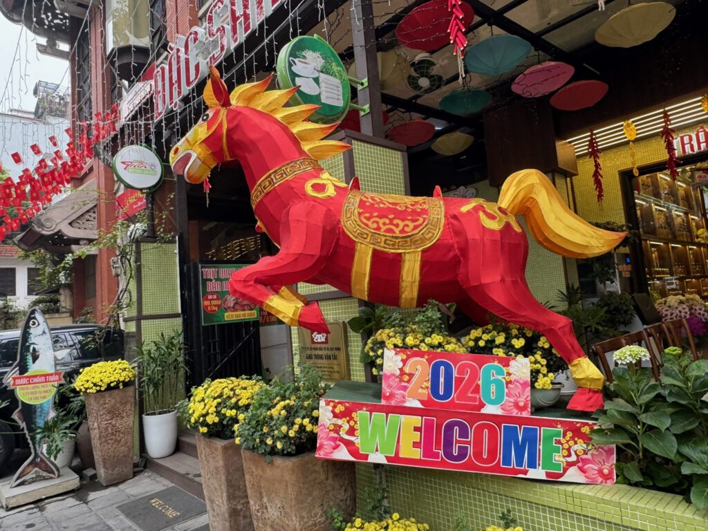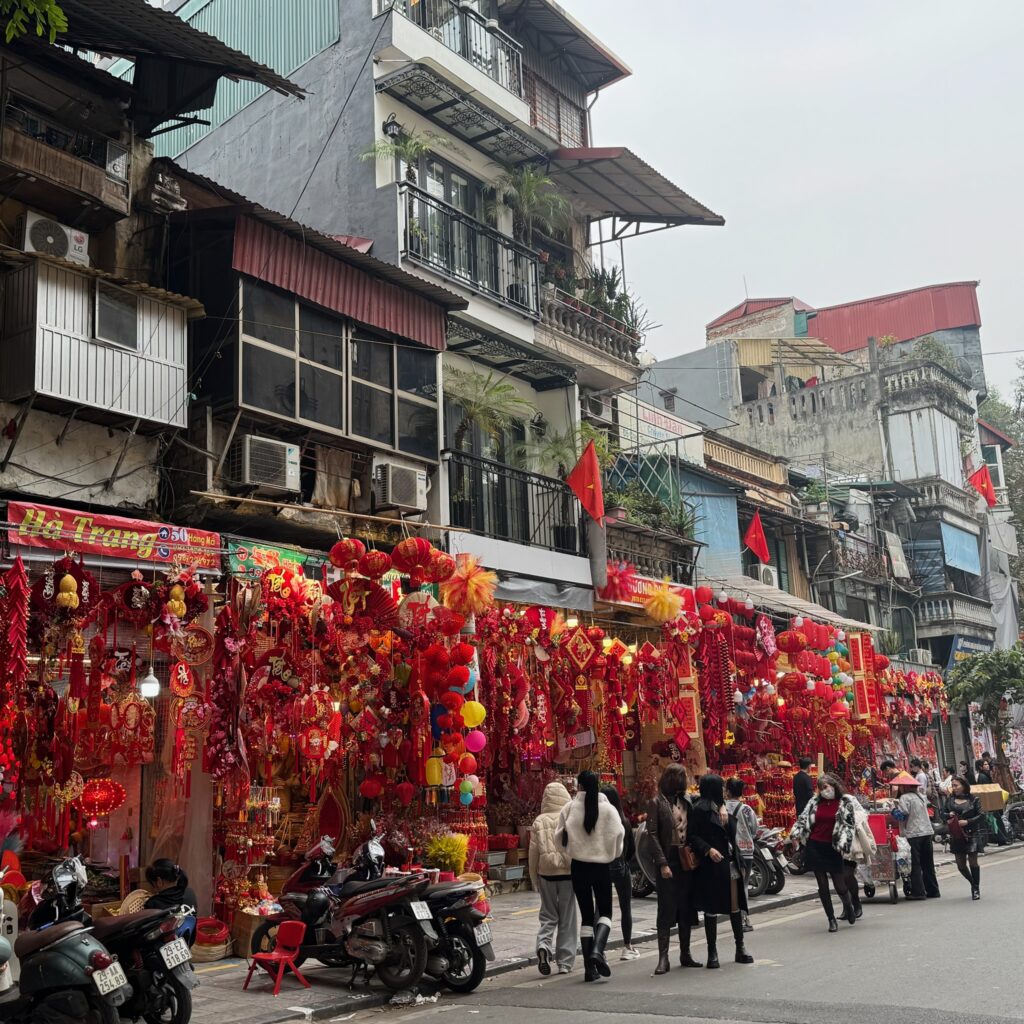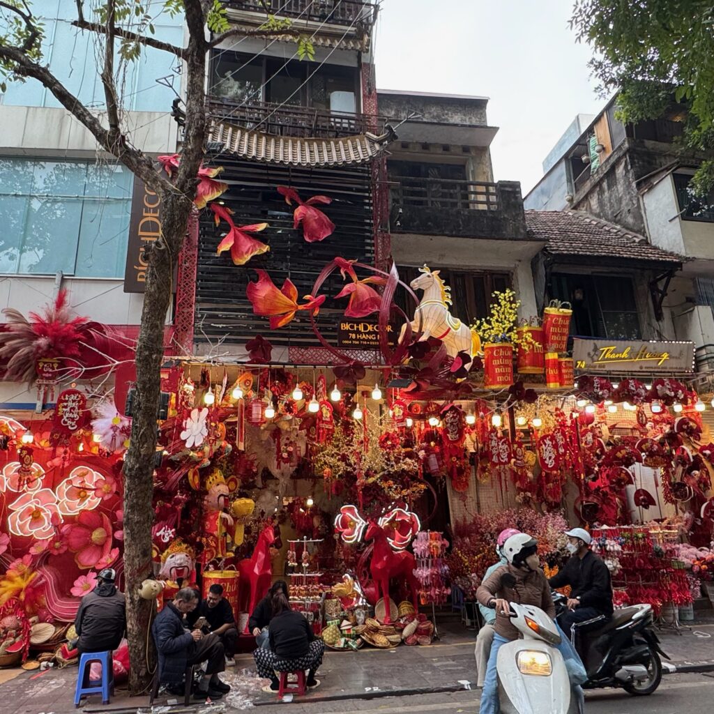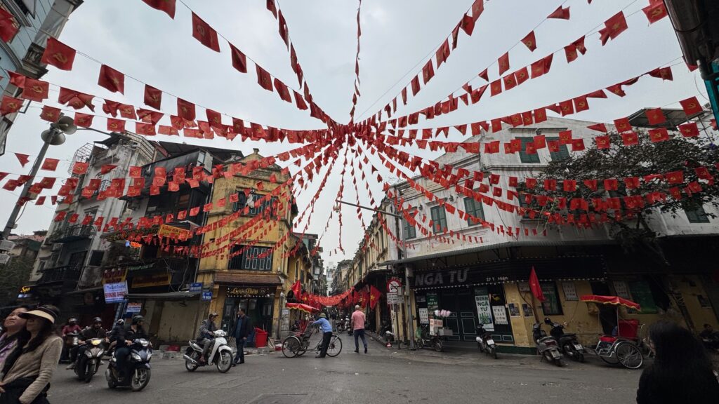 ハノイの街は 新年を祝うお飾りが。