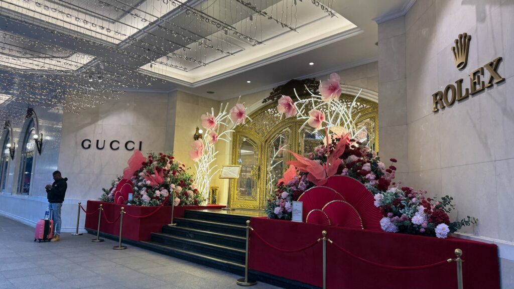高級店が並ぶエリアもお正月。