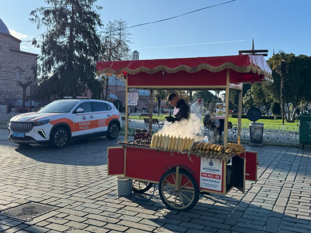 アヤソフィアの脇では軍の車両。
