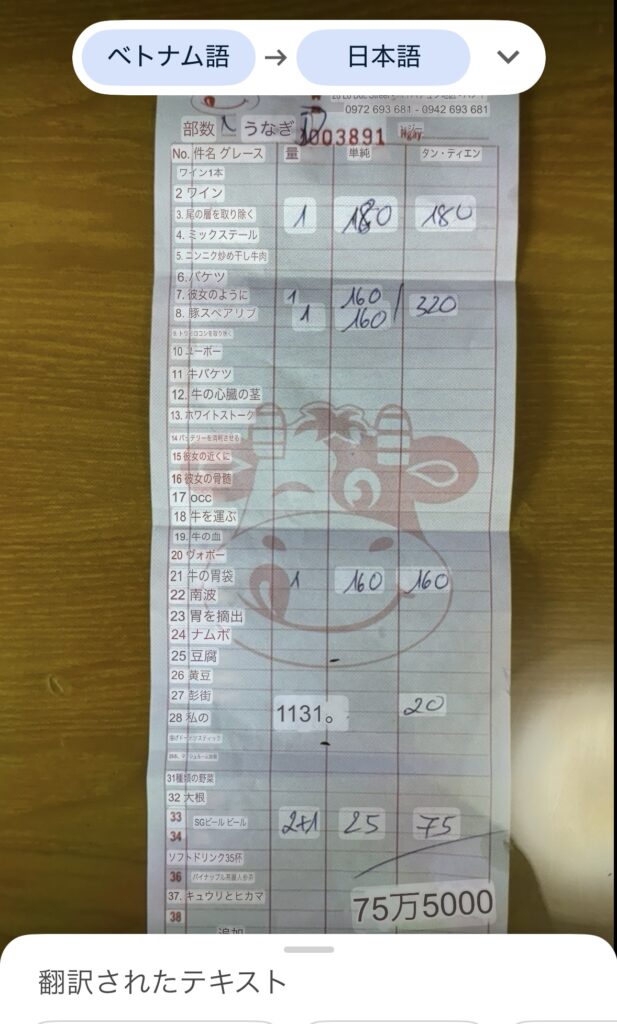 Google先生でメニューを直訳したら牛のトイレ〜たぶんテッポウのこと笑