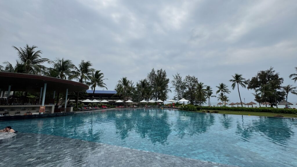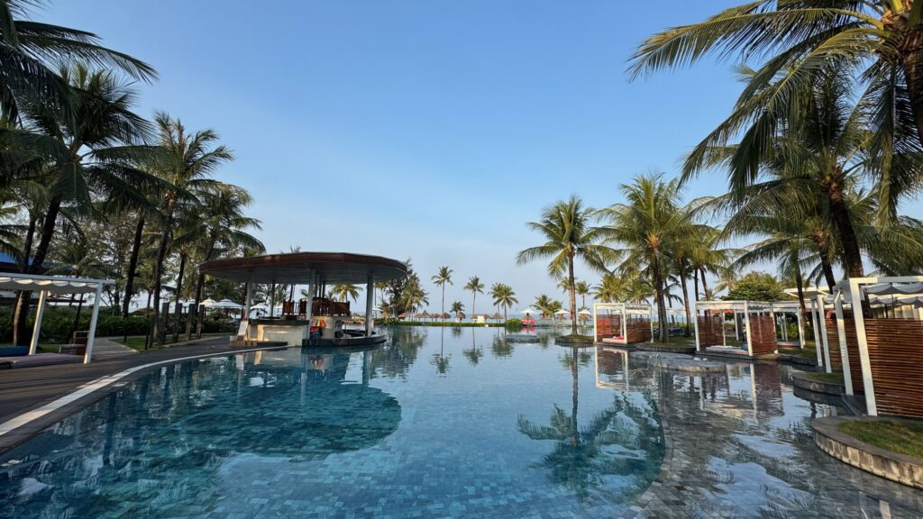 毎朝プールサイドで、ホテルのプログラムで朝ヨガがあったみたいです😅