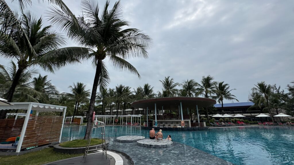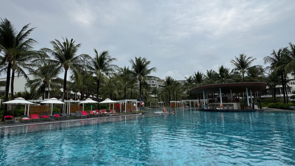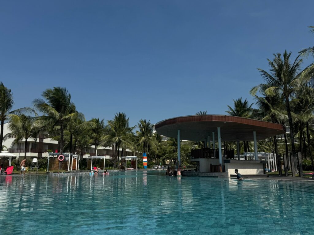 プール中央にプールバーがあってプールに入りながらお酒を飲むことができます