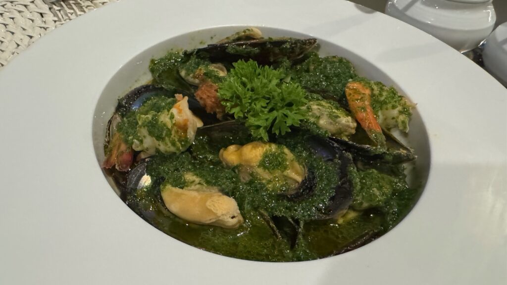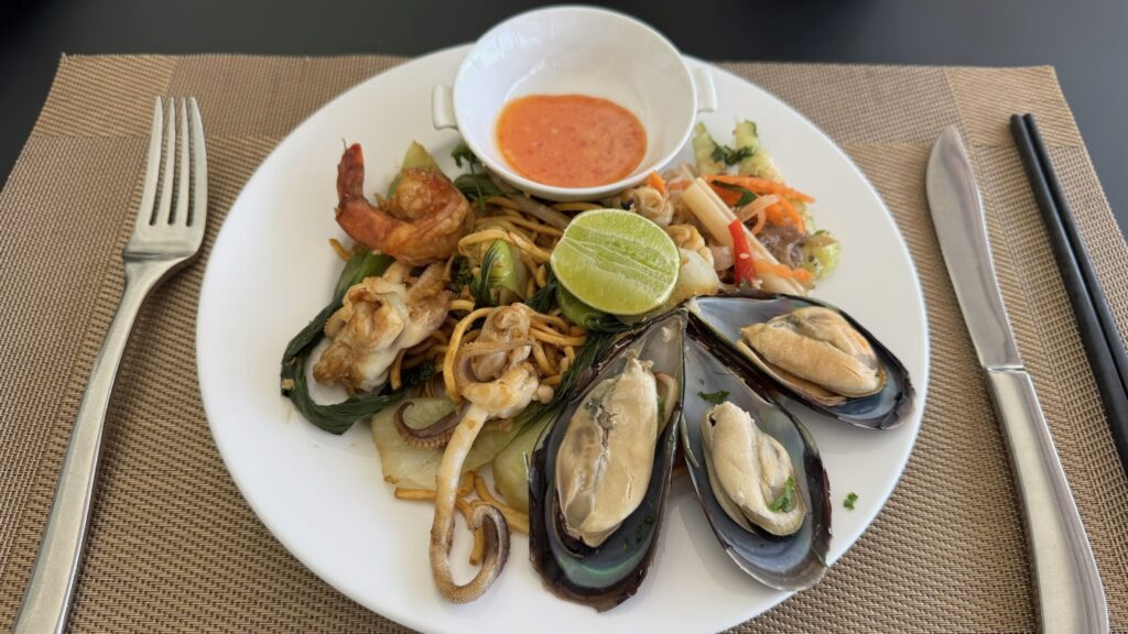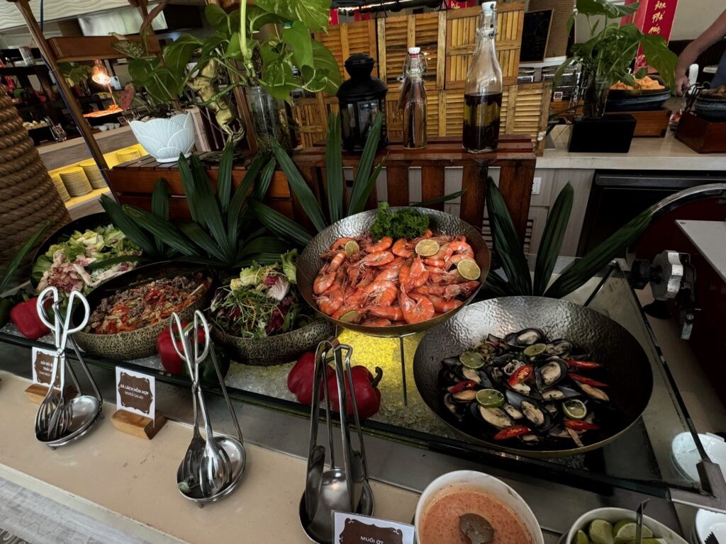 こちらはランチのお食事。ランチもビュッフェです。エビとムール貝が食べ放題!