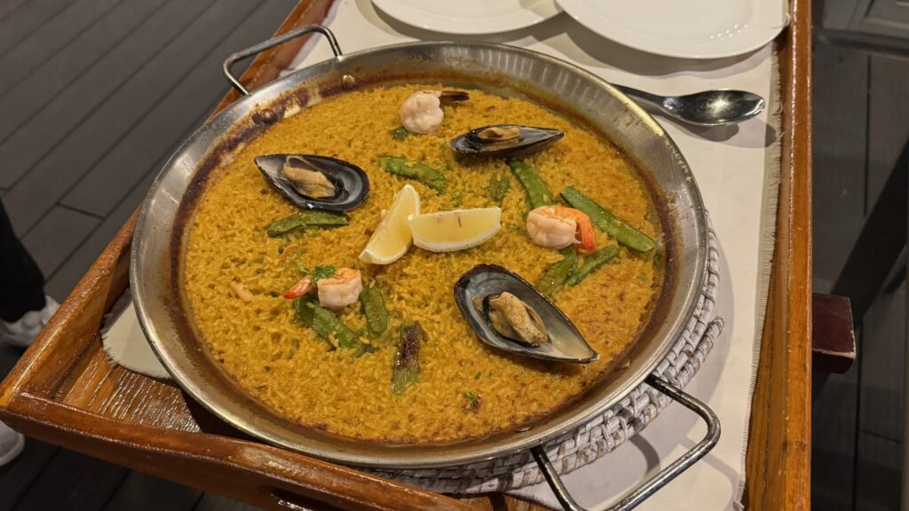 お店自慢のシーフードパエリア