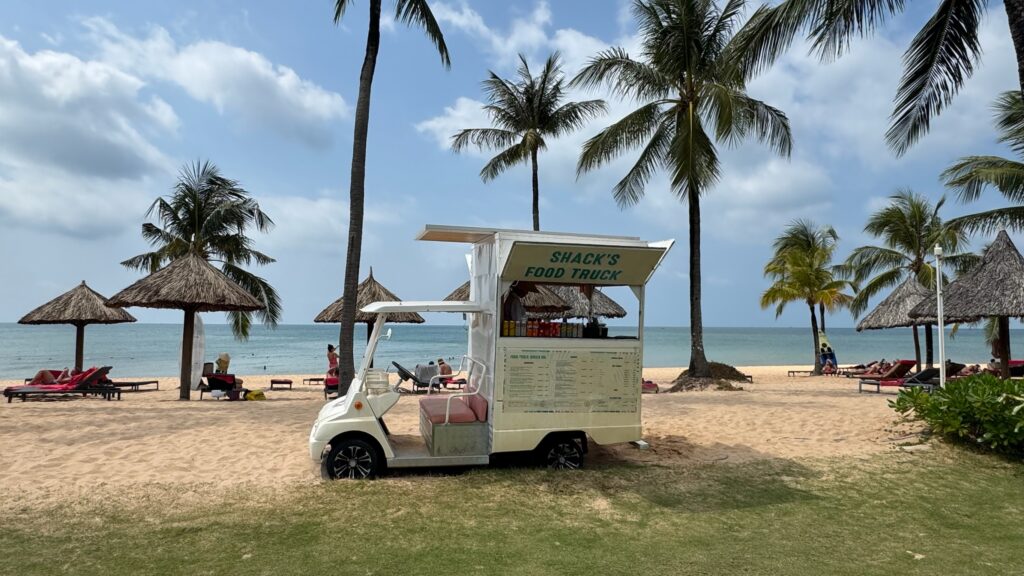 ビーチ沿いにフードトラックが11時にオープンします。