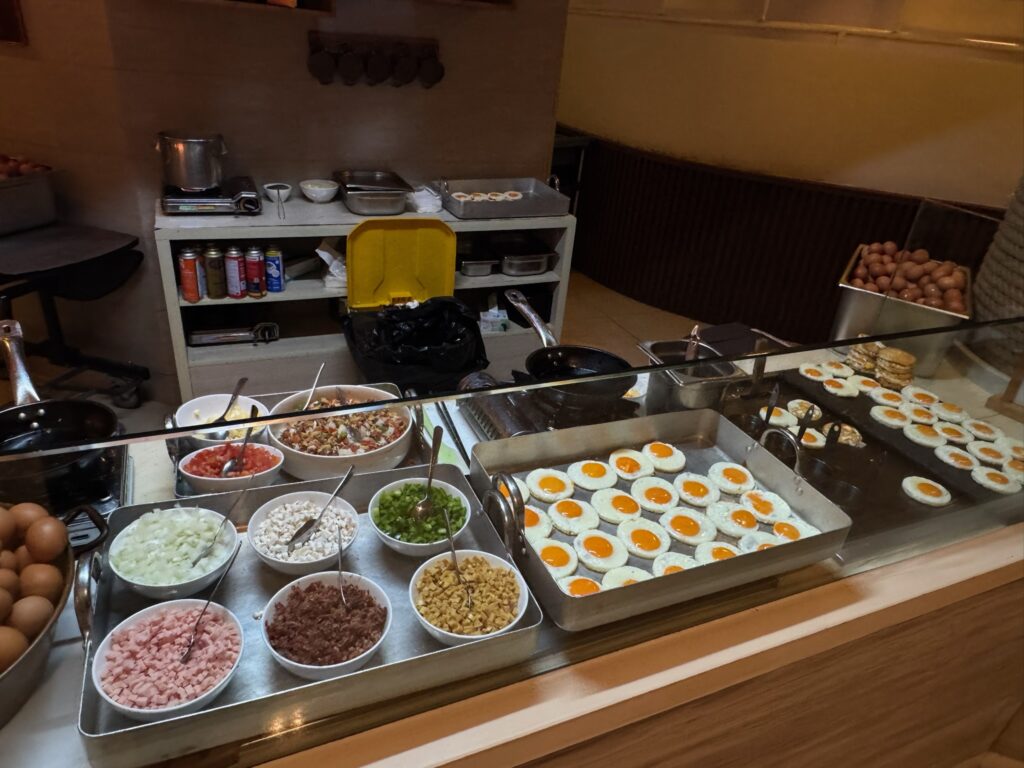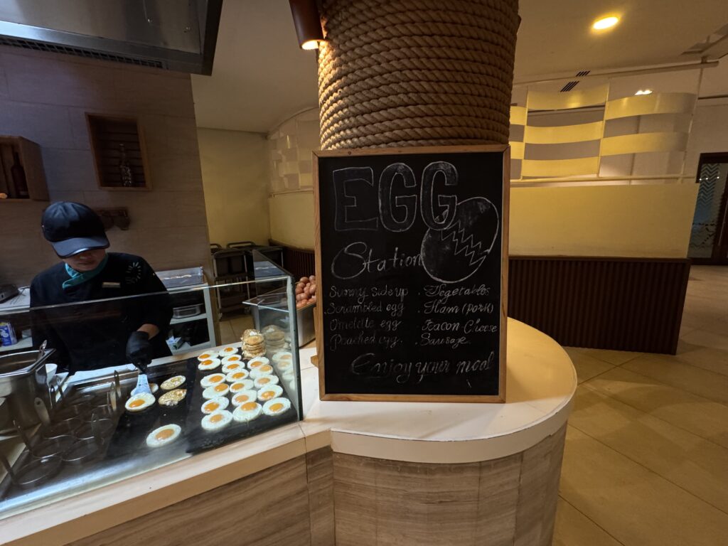 朝食のエッグステーション!いつも行列ができています。