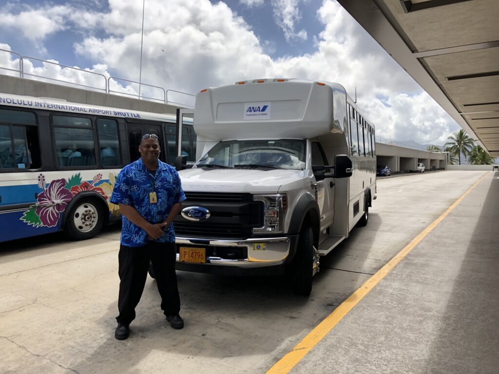 ホノルル空港の移動でANAラウンジは少し遠いので、初の「ANAラウンジシャトル」を利用します。